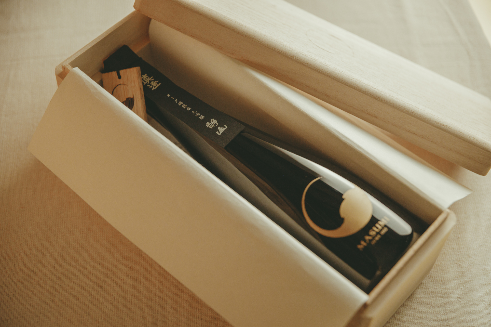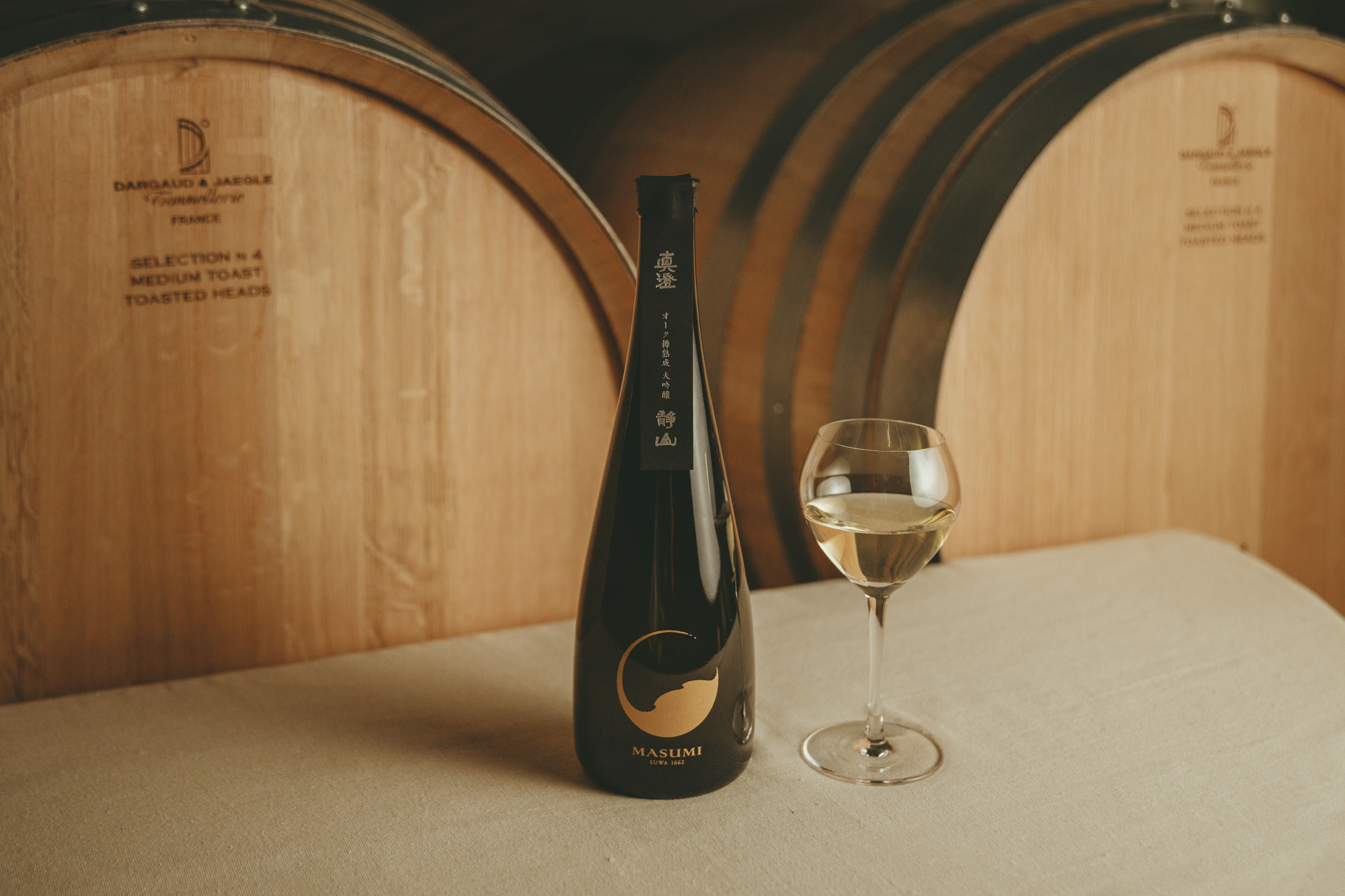 こちらの商品は、極上の酒米と塾達の技で醸した大吟醸酒をフレンチオークの新樽で寝かせ、日本酒の繊細さとオーク樽の重層的な個性に二年という時間のスパイスをまとわせた一本。